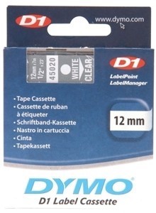 Dymo D1 Labelling Tape White On Clear 12Mm X 7M