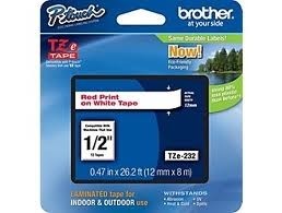 BROTHER TZ232 TAPE12MM RED ON WHITE LAMINATED