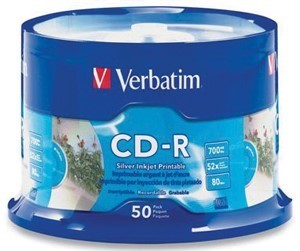 Verbatim Cd-R 80Min 52X Inkjet Printable Silver Pack 50